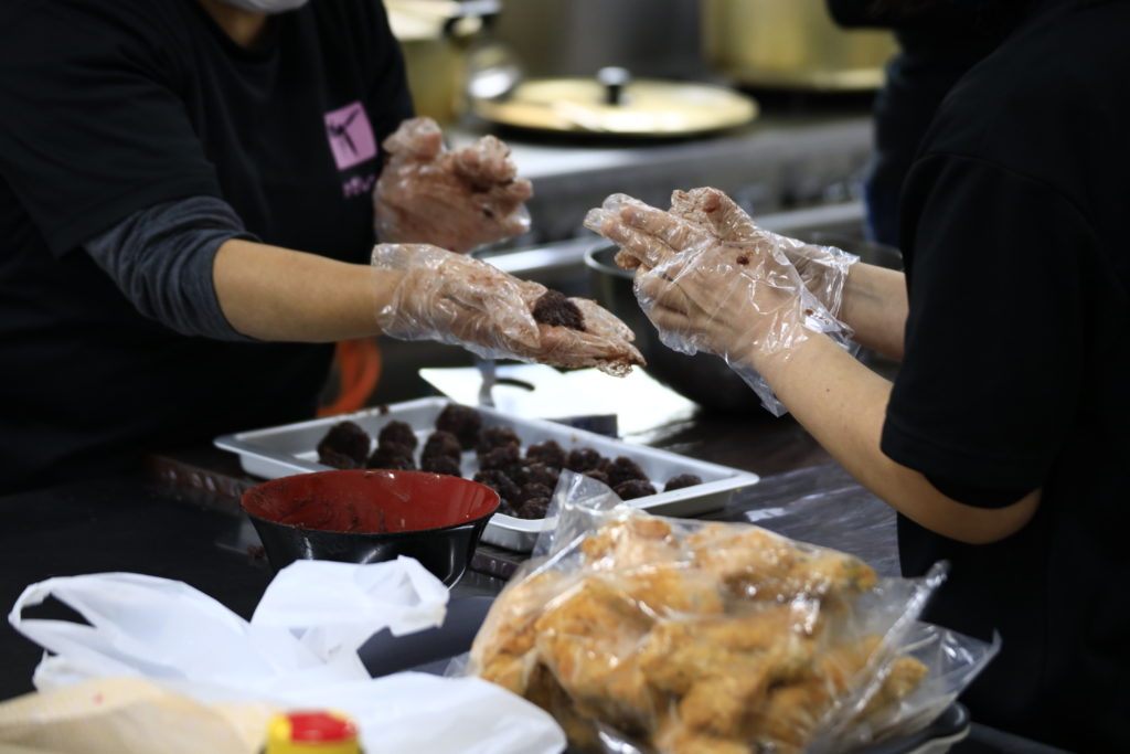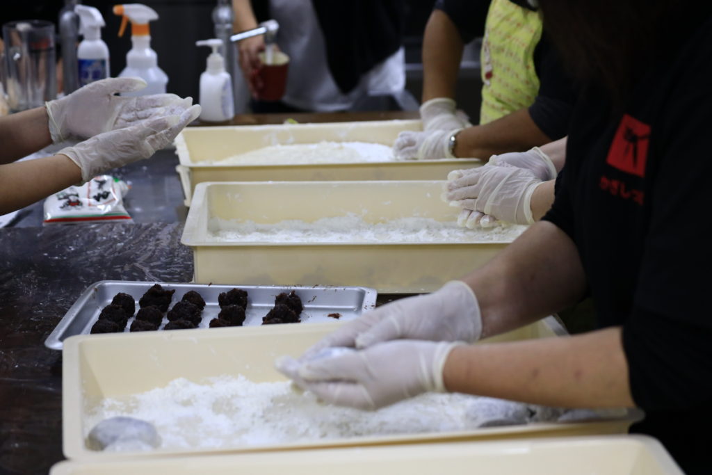 あんこを丸めて用意していたものと、