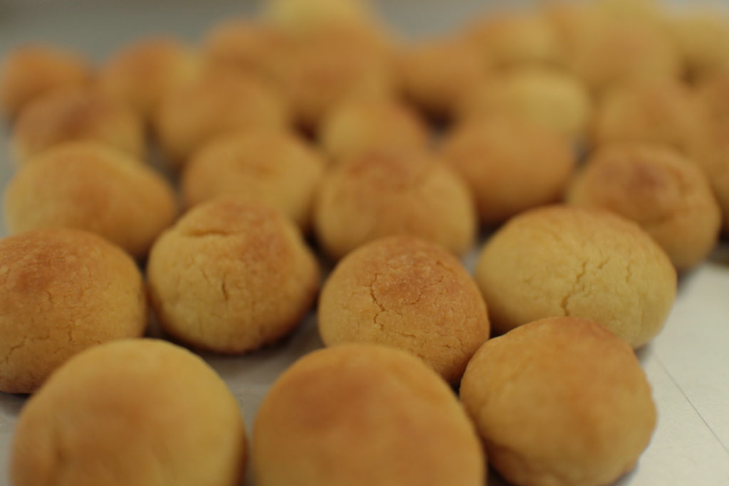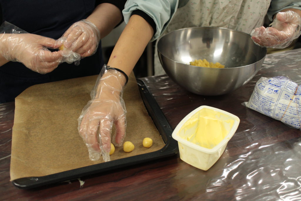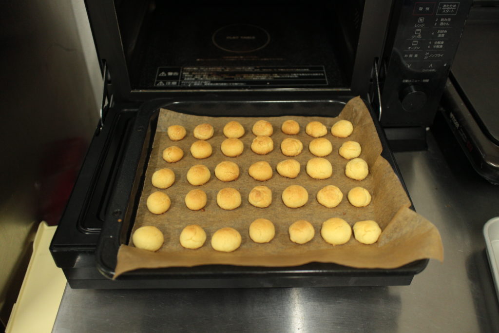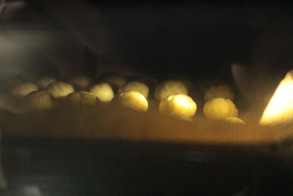 大きめの飴玉くらいの大きさにして形を整えたらオーブン用のバットの上に並べていきます。