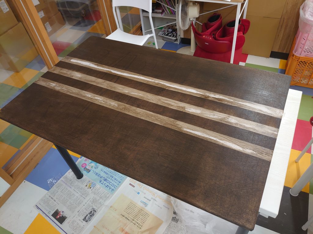 リフォームとリメイクはかぎしっぽのテーブルのお話しなのですが、メインの作業スペースにあるテーブルが6台あり、内5台が少しほっそりとした物でした。