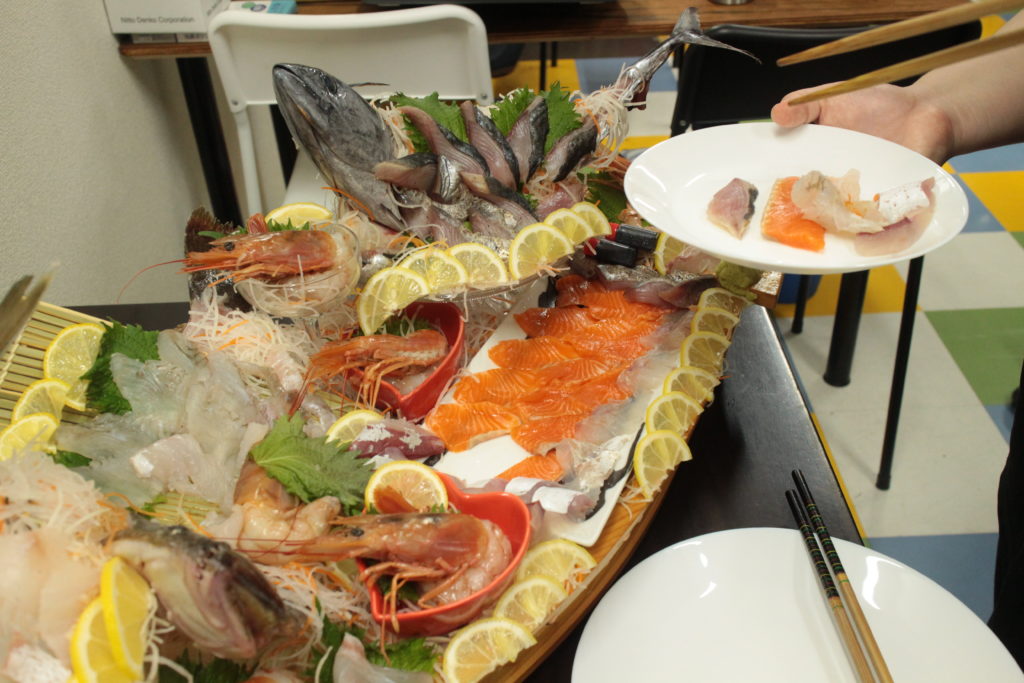 色んな種類のお刺身やとても立派な海老もありましたが、あっという間に4台分の船盛がなくなってしまいました(^^;,,,