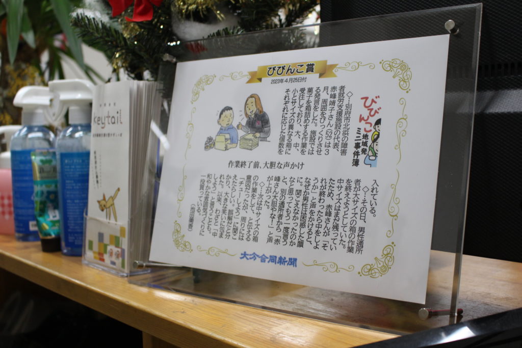 何回か前のブログで、新聞に掲載された話題をご紹介したと思いますが、その時の記事がそのコーナーの月間大賞を獲得してしまい、立派な立てるタイプの額と共に賞状を頂きました(^o^)/