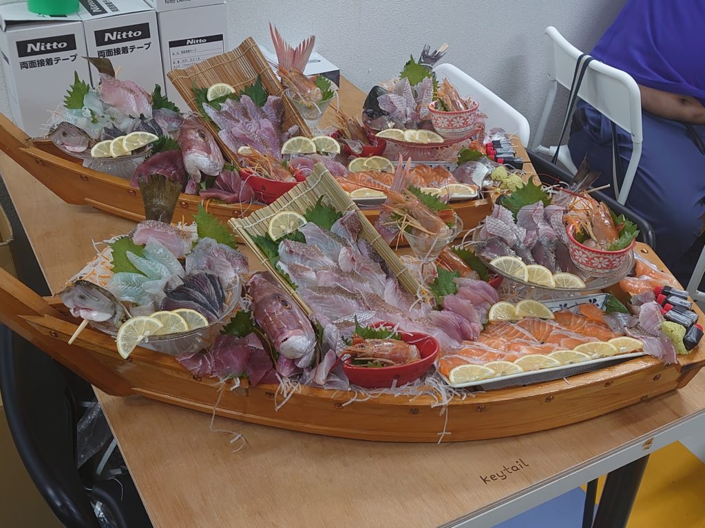 初めて船盛りを見る方もいましたし、これまでに見た事ある方も5隻という量には圧巻で、先ずは写真撮影からのスタートでした(笑)