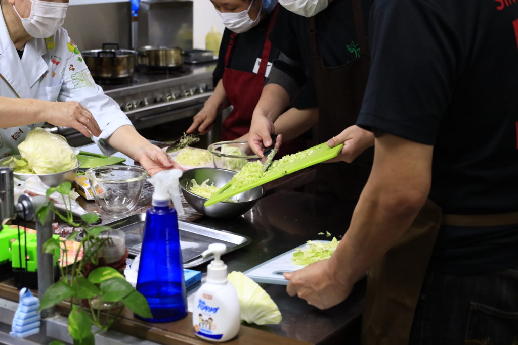 いざ調理をはじめていくと、包丁が苦手な方にもとはさみを使っても良いと言うことで、その為にハンバーグもキャベツで作るようになっていたんですね!