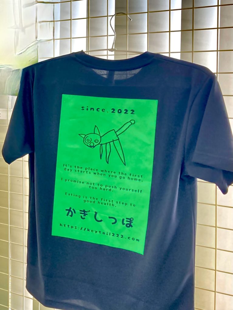 利用者さんがデザインした制服のTシャツも合わせて展示しています。