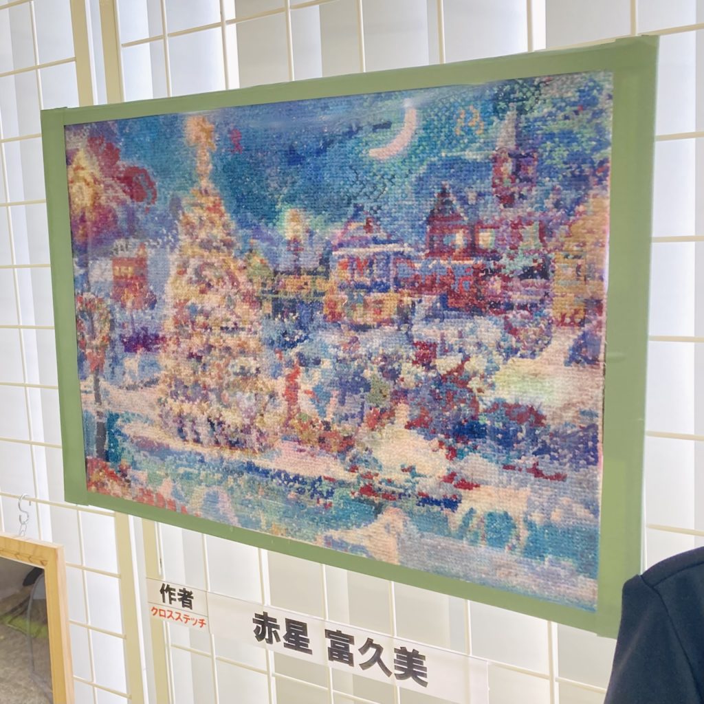 ・クリスマスシーンを切り取った刺しゅうのダブルステッチ