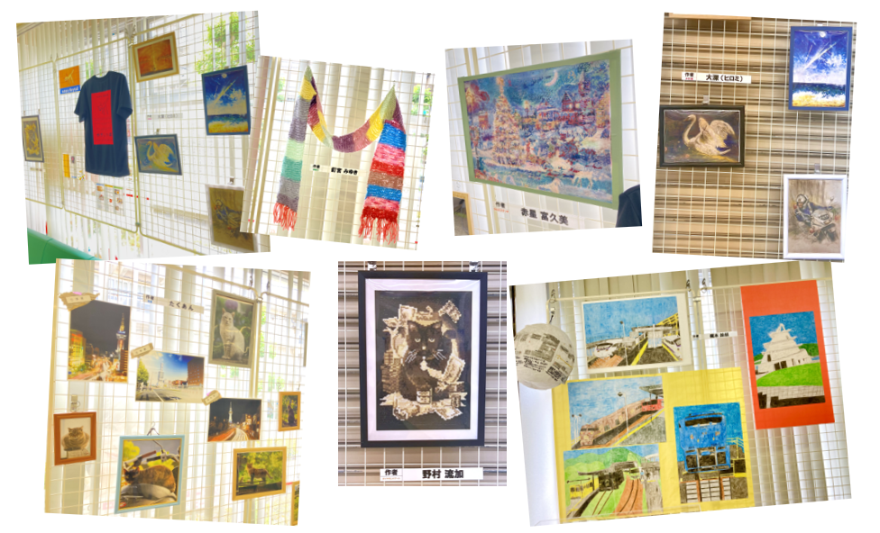 利用者さんが作った「芸術」がかぎしっぽを飛び出し、大分銀行・太陽の家支店のロビーをにぎわせることになりました。